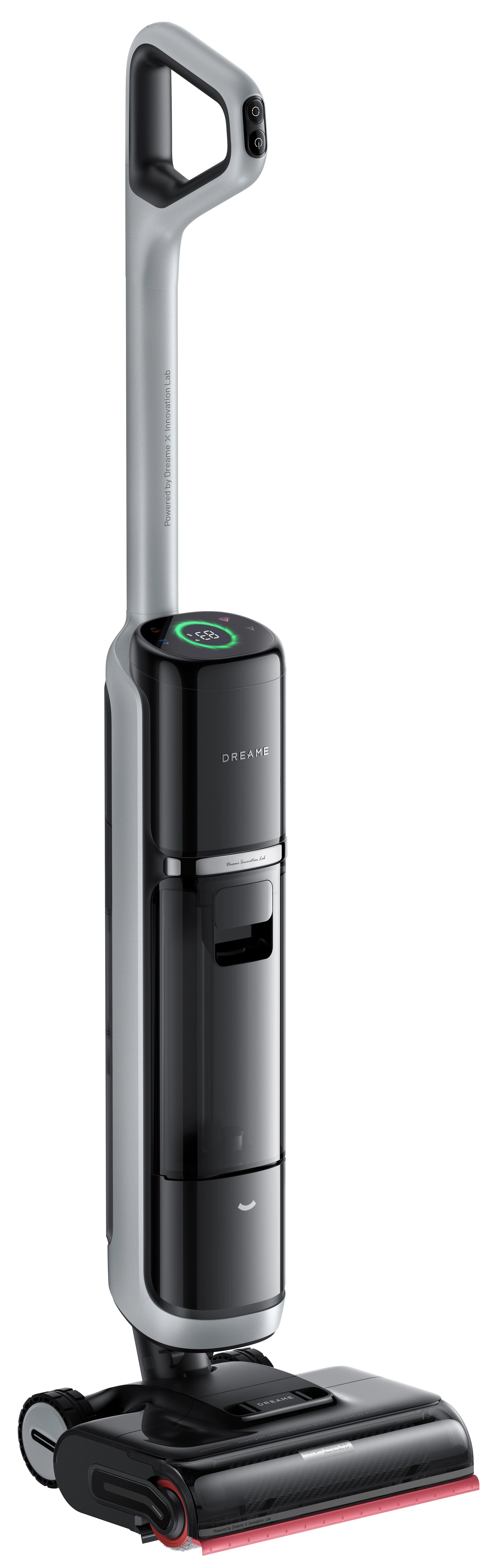 Автономность достигает 72 минут в тихом режиме и около 20 минут при использовании горячей воды. Базовая станция выполняет самоочистку валика горячей водой и сушит его горячим воздухом до 90–100°C, что предотвращает появление неприятного запаха и плесени. Пылесос может ложиться почти вровень с полом (до 180°), что удобно для уборки под мебелью. Вес устройства около 6,2 кг, управление возможно через приложение Dreamehome.