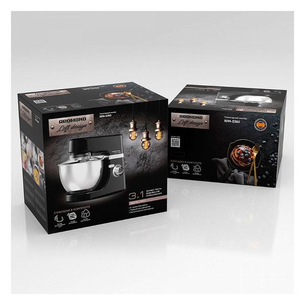 REDMOND RFM-5360 — классический планетарный миксер с металлической чашей объемом 4,5 литра, что позволяет готовить большие порции теста для тортов, хлеба или пельменей.